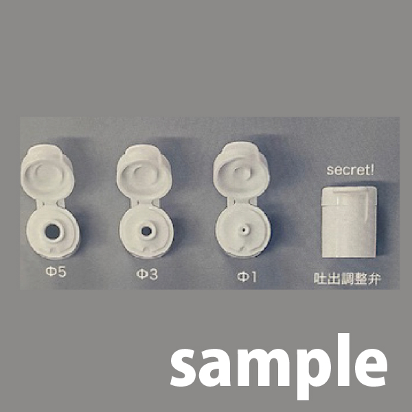 用途や中身の粘度に応じて選べる、4タイプの吐出仕様をラインナップ。吐出孔サイズは1φ・3φ・5φの3種類をご用意。