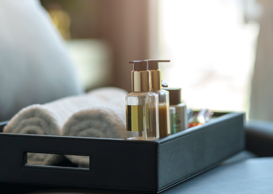ホテルのアメニティとしてブランド価値を高めるスパウトパウチ。液体・半固体どちらにも対応し、キャップ付きで衛生的に繰り返し使用可能。金冠キャップにも対応しており、高級感のある演出で宿泊体験の価値を高めます。軽量・省スペースで扱いやすく、試作や導入テストにも最適です。